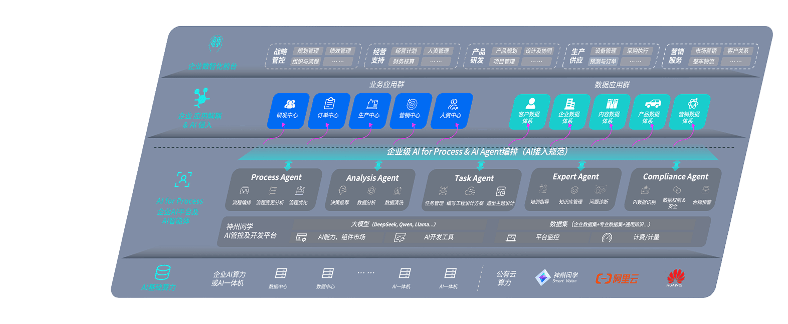 端到端的一站式AI工作空间深度融合了从企业战略规划到日常经营的全流程业务板块,,,,定向解决车企内部领域多、、部门多、、、链条长、、、场景碎片化等难题,,,,支持车企快速构建以AI为核心的生产力写作体系,,,实现任务执行与AI能力的无缝集成与交互